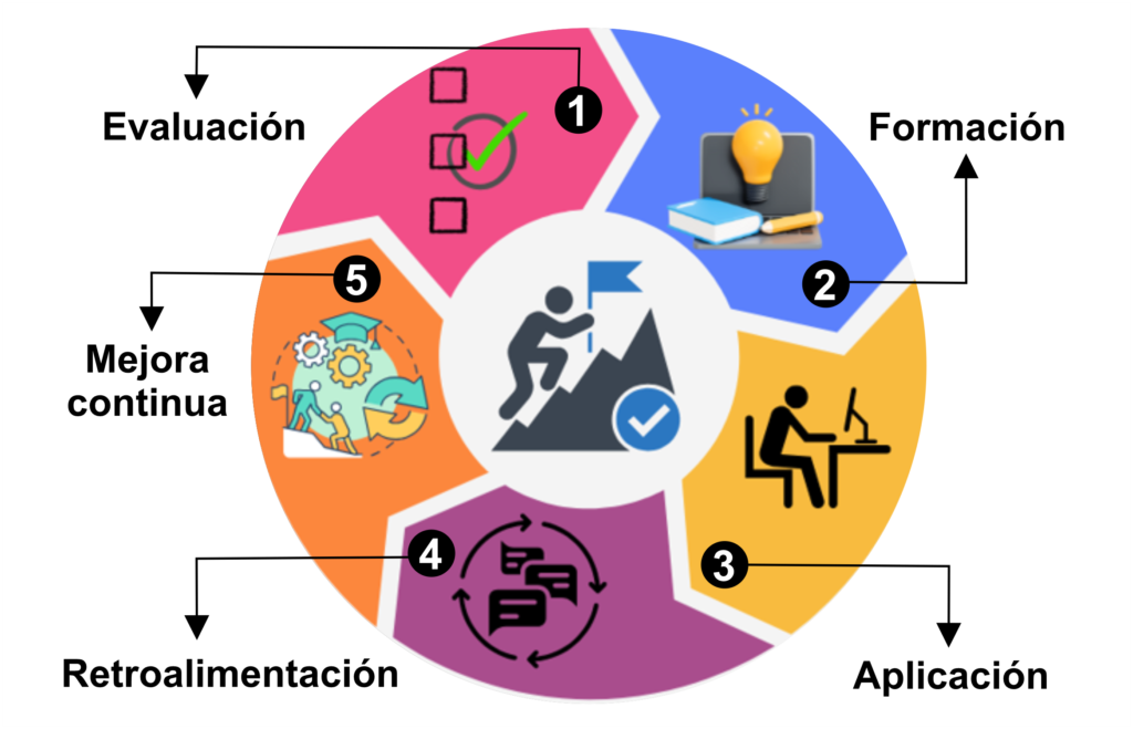 Asegura que el aprendizaje nunca termine. Tras la retroalimentación, se ajustan las estrategias de formación y se se sigue desarrollando nuevas habilidades, garantizando un proceso de crecimiento constante.